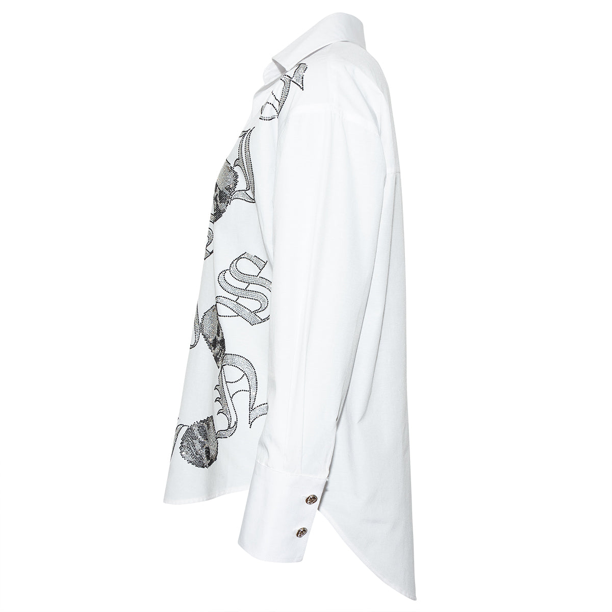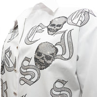 Kombinácia rebelského dizajnu lebky, trblietavých kamienkov a špeciálneho nápisu robí z tejto blúzky jedinečný kus oblečenia.