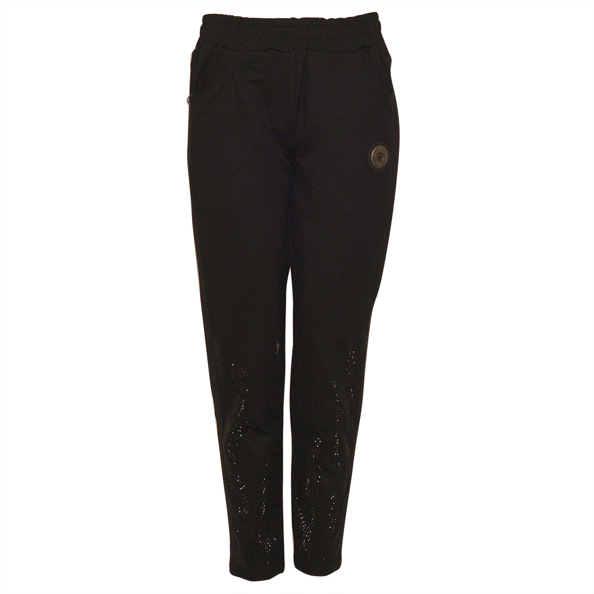 Luxusné dámske nohavice Carmen s elegantne usporiadanými kamienkami na oboch nohách.