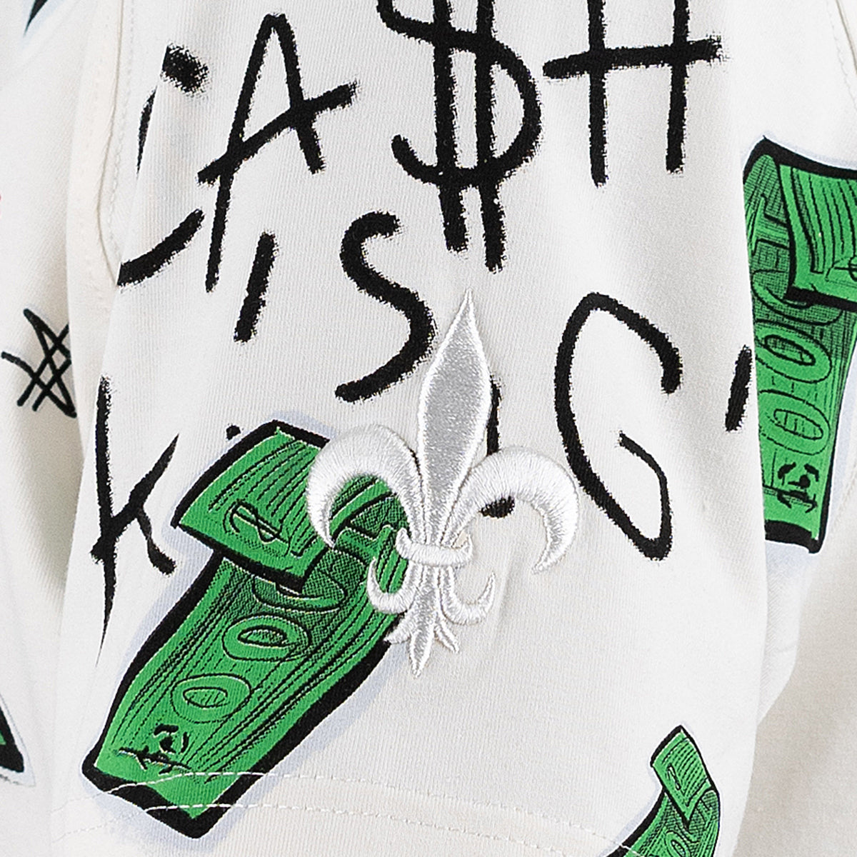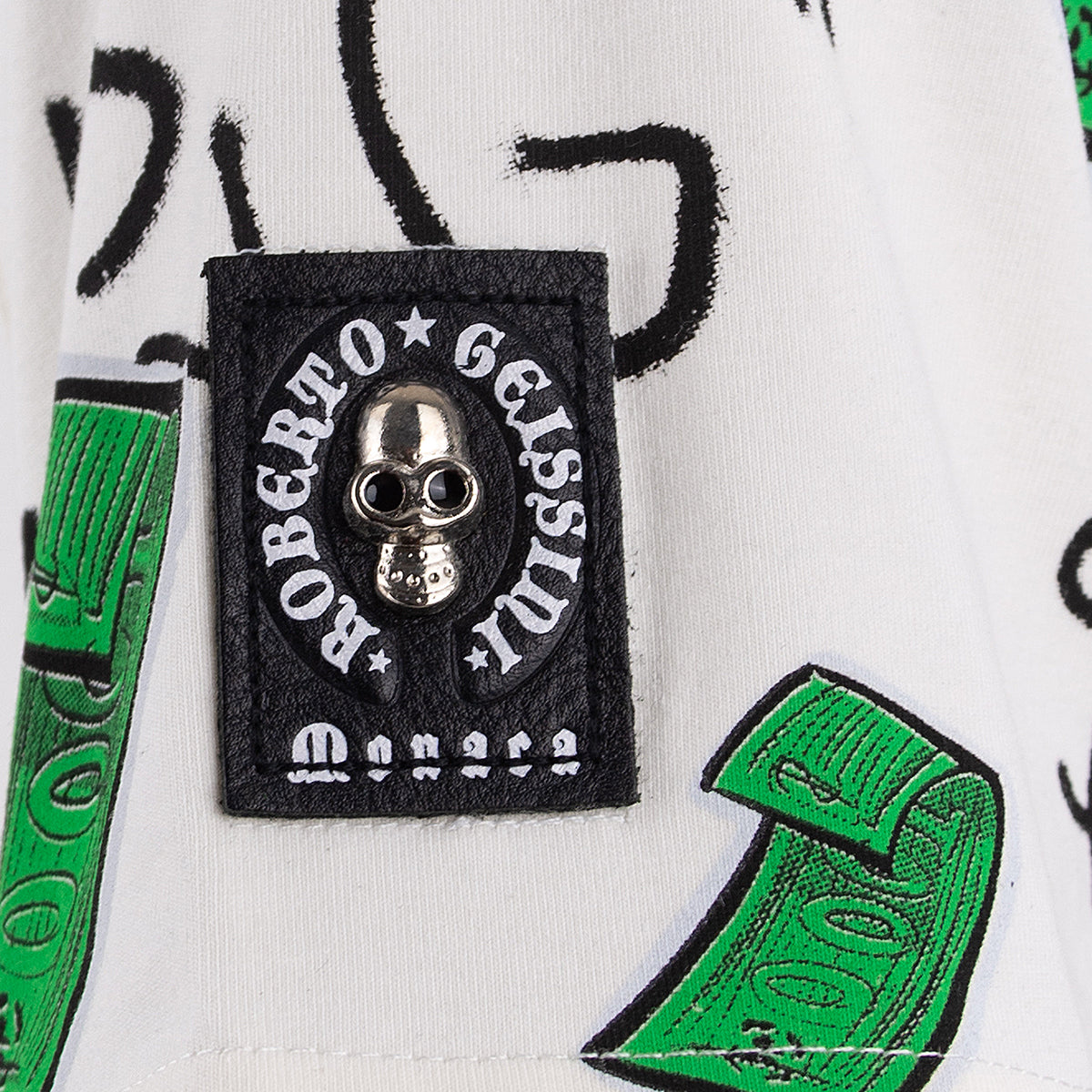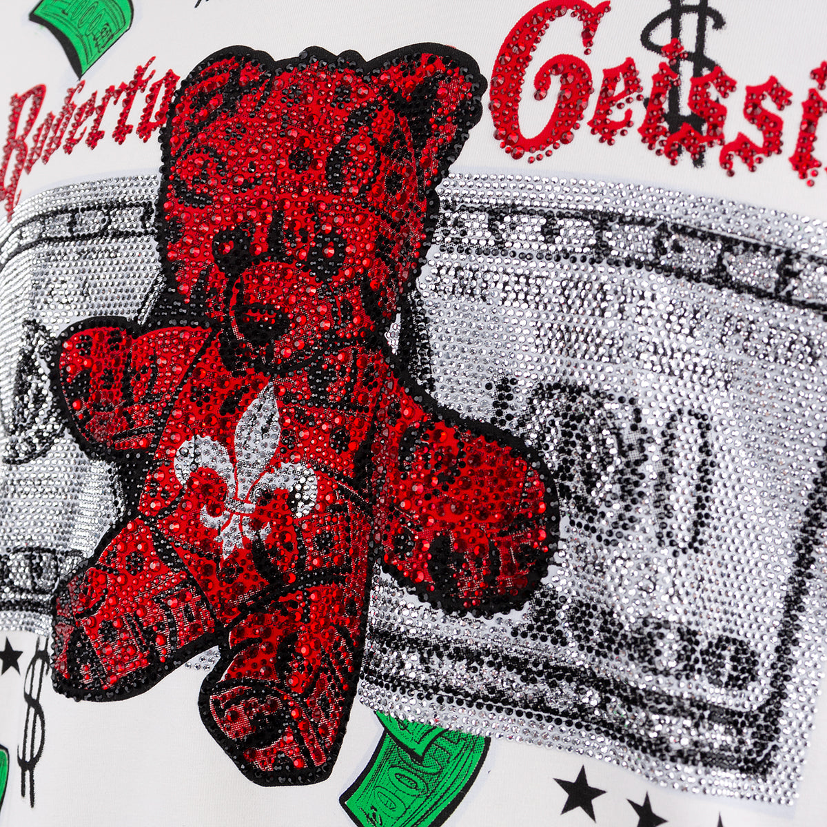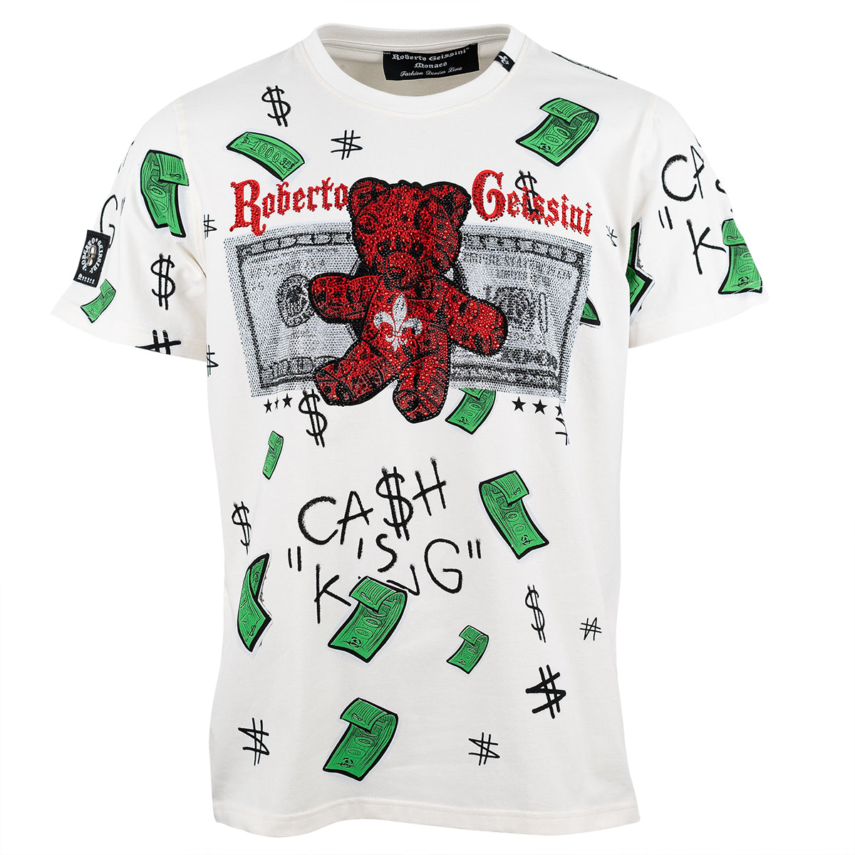 Výrok „Cash is King“ dodáva dizajnu sebavedomie, zatiaľ čo červený nápis Roberto Geissini s červenými trblietavými kamienkami obohacuje tričko o ďalší pútavý prvok.