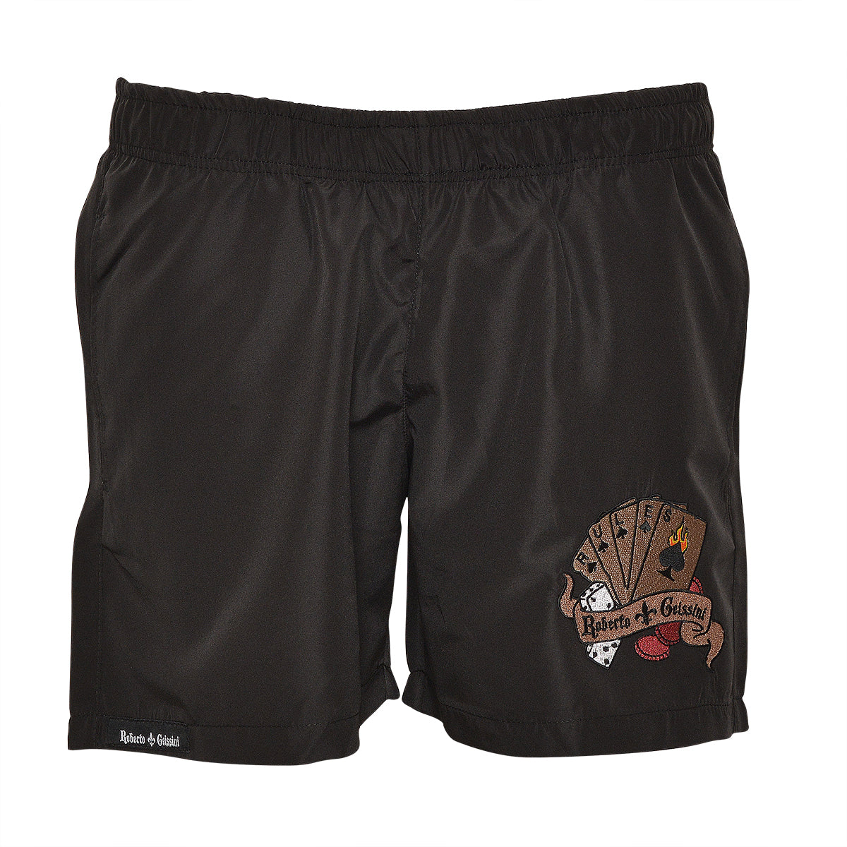 Pánske kúpacie šortky s vyšívanými hracími kartami - dizajn kocky a nápis Roberto Geissini