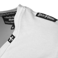 S vyšívanou ľaliou na ľavom rukáve, kvalitnou nášivkou v koženom vzhľade so strieborným nitom lebky na pravom rukáve a nášivkou s logom Roberto Geissini na ľavom ramene.
