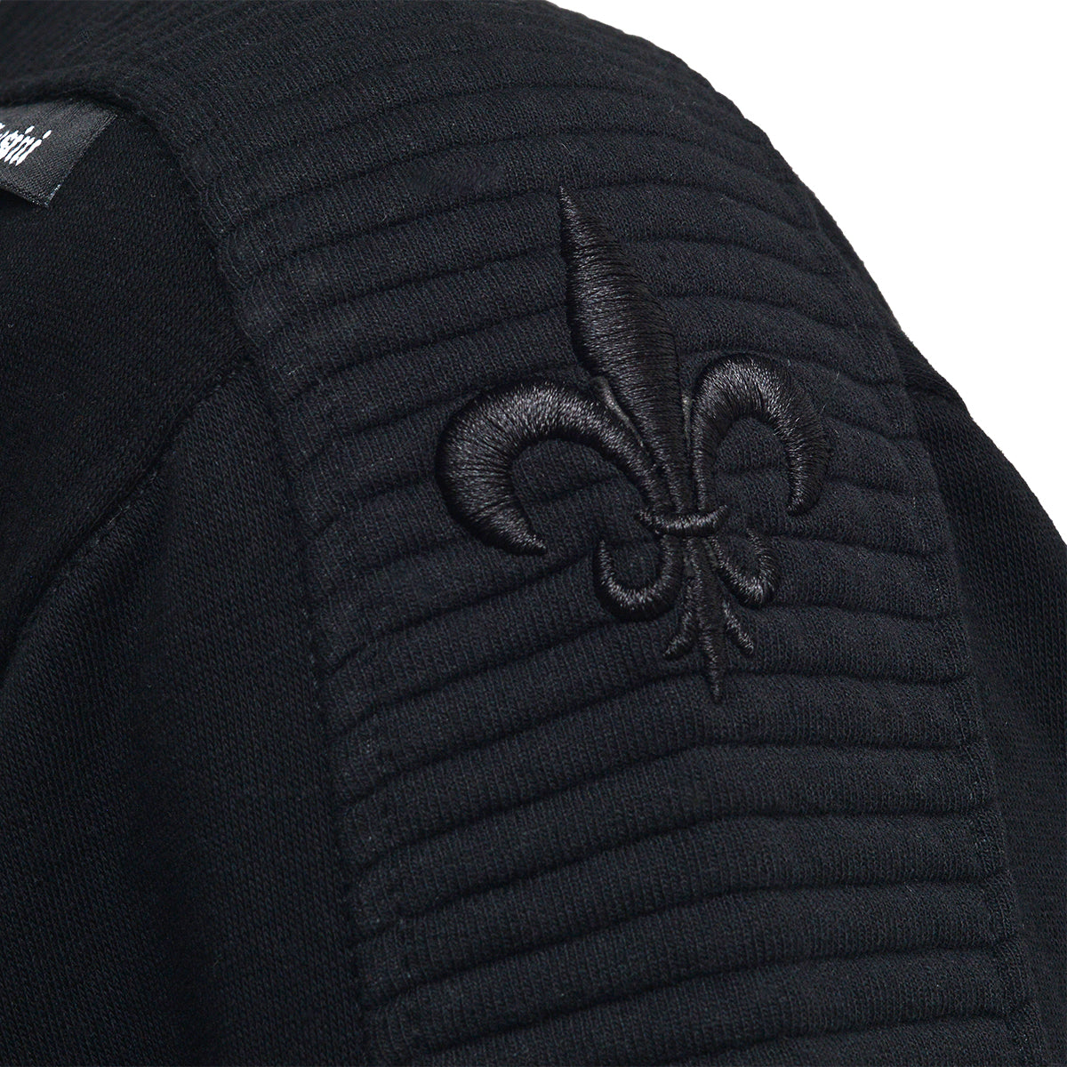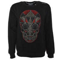 Für Fans von klaren Formen ist dieses Herren Sweatshirt die passende Bekleidung!Mit den roten & silbernen Strasssteinen in unterschiedlicher Anordnung ist dieses Herren Sweatshirt einfach ein Hingucker! Mit gestickter Lilie auf linkem Ärmel, hochwertigem Patch in Lederoptik mit silberner Totenkopf-Niete am rechten Ärmel & Roberto Geissini Logo Aufnäher auf linker Schulter.