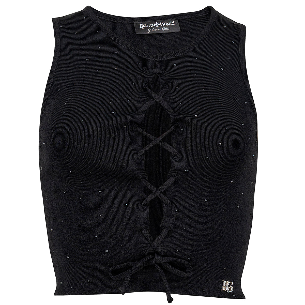 Mit diesem Top setzt du ein modisches Statement! Die raffinierte Schnürung vorn und feine Strassakzente verleihen dem Look einen Hauch von Luxus.