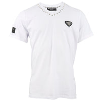 Das V-Neck Exclusiv T-Shirt überzeugt durch seinen cleanen Look mit einem besonderen Twist: Der V-Ausschnitt ist mit markanten Nieten verziert und verleiht dem Shirt eine edle, leicht rockige Note. Erhältlich in Schwarz und Weiß, ist es ein vielseitiges Essential für stilbewusste Looks.