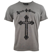 - Großes Frontmotiv: Kreuz mit Used-Optik und Strassakzent