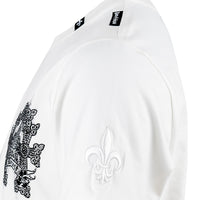 - Vzrušujúci dizajn: Čierne a strieborné trblietavé akcenty na bielom tričku z neho robia absolútny pútač.