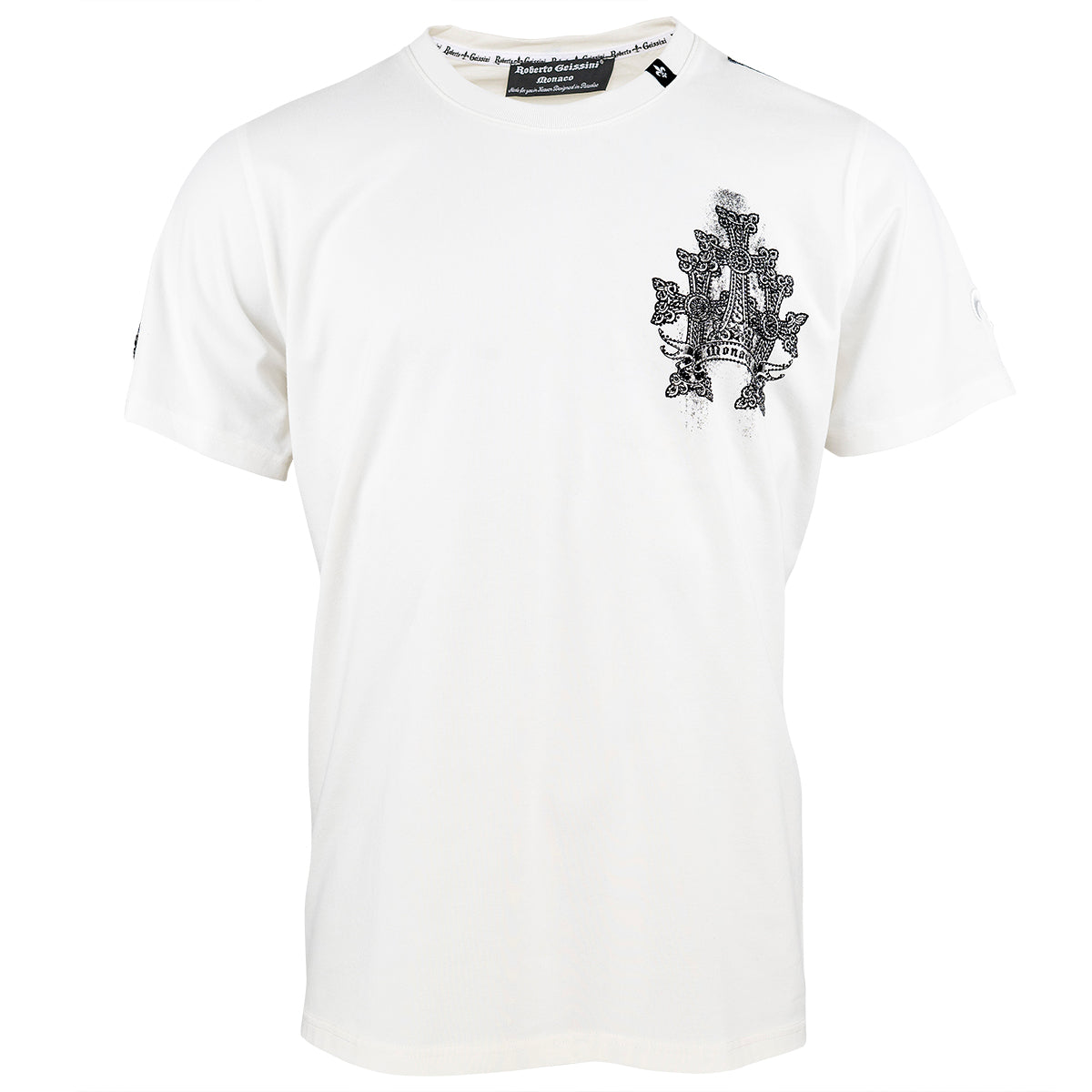 Objavte hojdacie biele tričko od Roberta Geissiniho – skutočný vrchol vďaka cool trblietavým akcentom! Toto tričko svojím pútavým dizajnom a žiarivými detailmi upúta pozornosť každého.