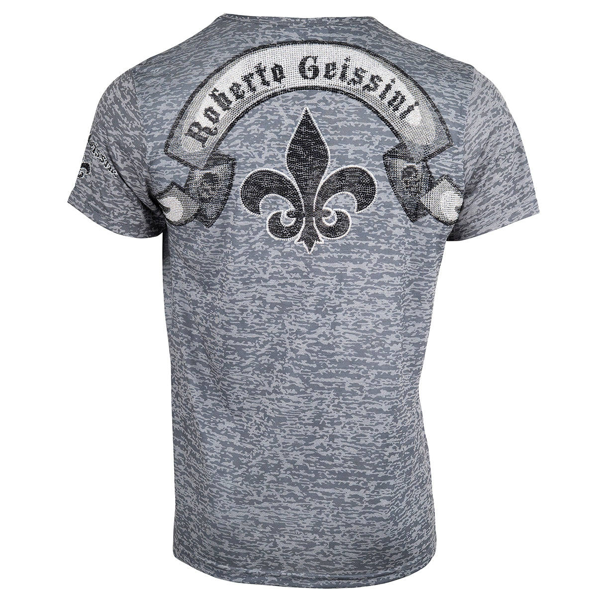 Das Face Burnout V-Neck T-Shirt in Schwarz kombiniert ein auffälliges Skull-Motiv mit einem typischen Roberto Geissini Print. Hergestellt aus luftigem Burnout-Material, ist es ideal für warme Tage und sorgt für ein angenehmes Tragegefühl mit leichter Transparenz.