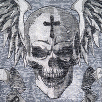 - V-Ausschnitt mit markantem Flügel-Schädel-Motiv