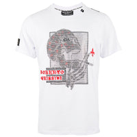 Das Smoke T-Shirt zeigt einen Totenkopf mit Zigarette, kombiniert mit rauchigen Details und einem kontraststarken Roberto Geissini Schriftzug.