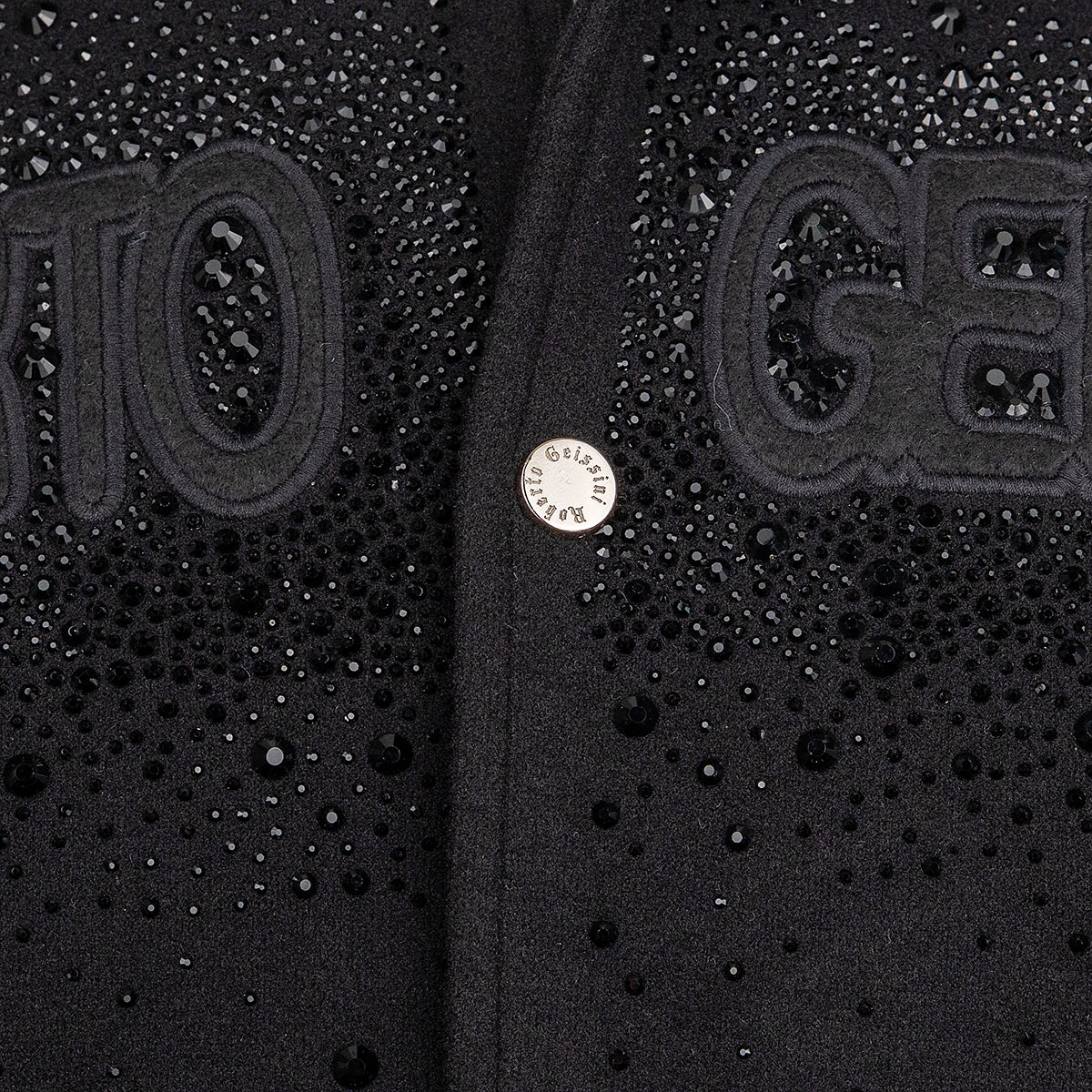 Der Klassiker im Roberto Geissini Look – unsere College Jacke für Herren bringt Streetstyle und Eleganz zusammen. Mit Strassdetails auf der Front und markanten Logo-Elementen wird sie zum Eyecatcher in jeder Situation.